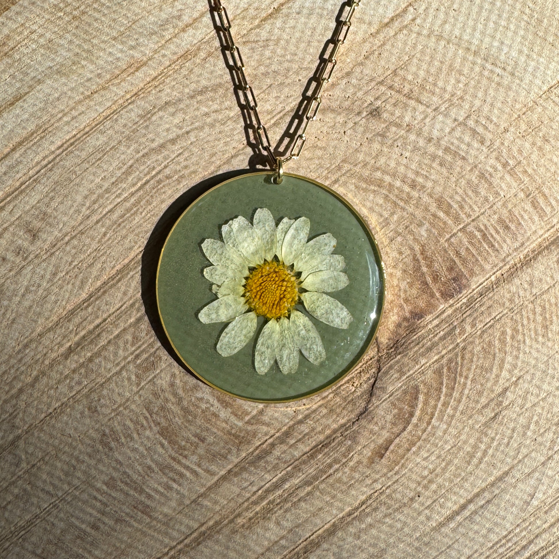 Daisy Necklace | Real Pressed Flower in Resin Pendant